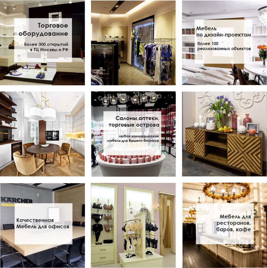 2) Замер и производство мебели и торгового оборудования. Наше мебельное производство находится в Москве.